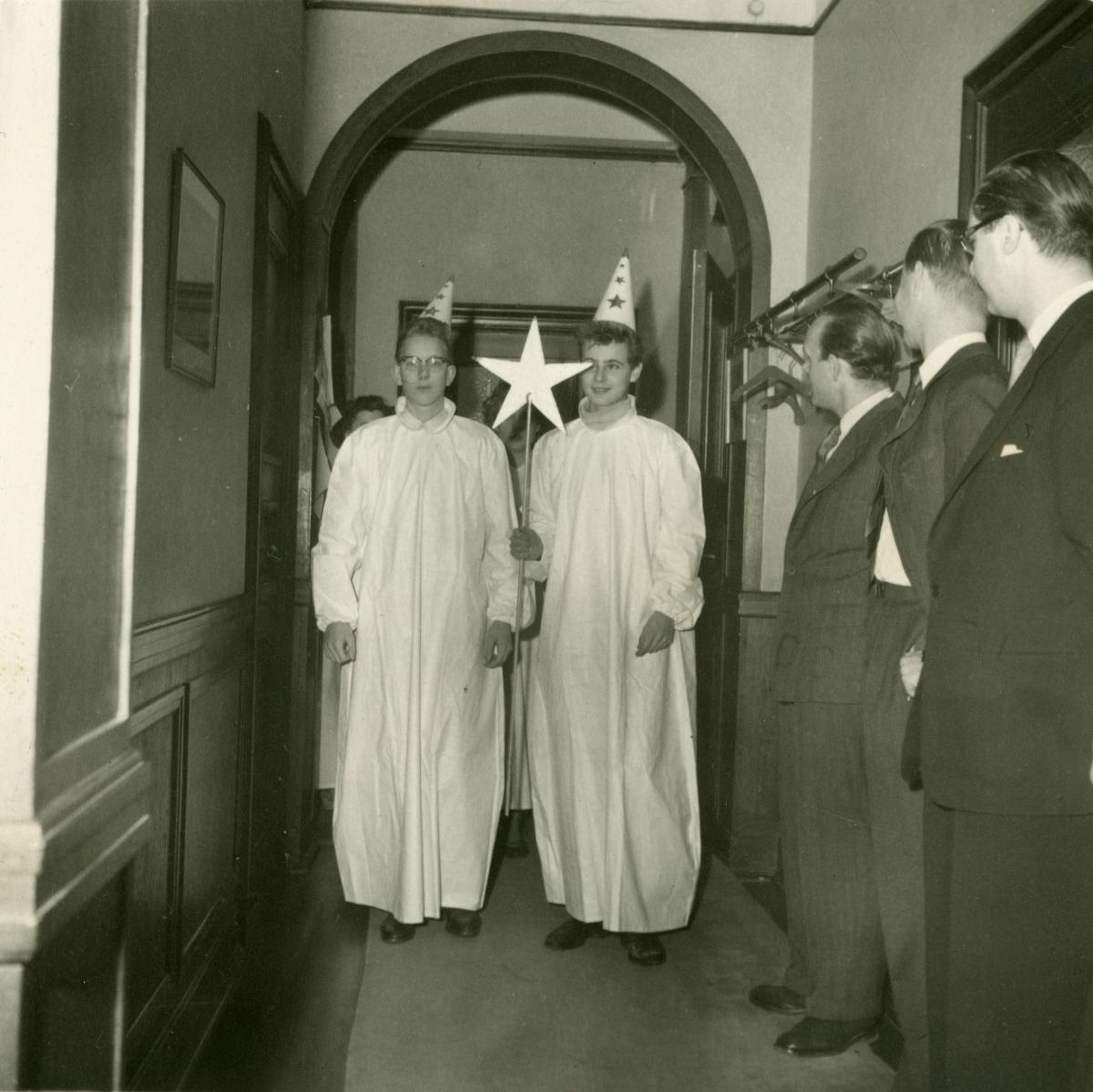 Bilden verkar inte vara tagen ombord på ett av Svenska Orientlinjens fartyg utan i en kontorsmiljö