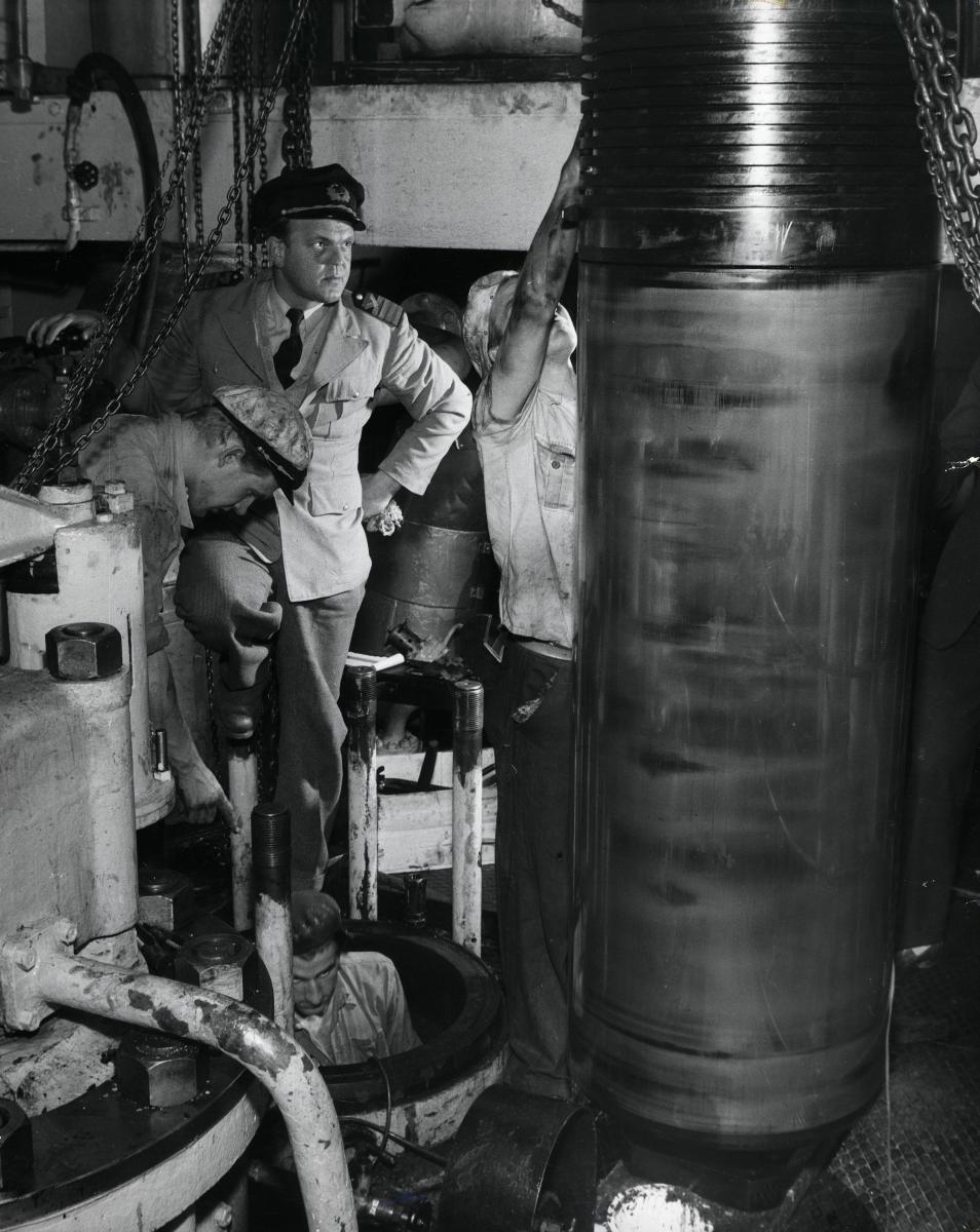 Kolvdragning i maskinrummet ombord ett Grängesbergsfartyg