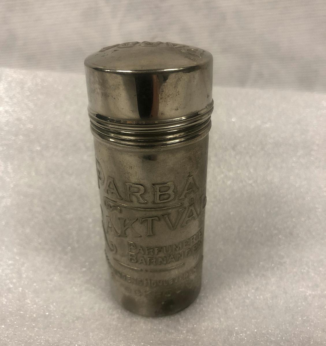 Gå tillbaka till sökLägg till i Min samlingKopiera länkSkriv utBurk för raktvålAktörerAxel Evert Taube (1890 - 1976), Brukare Liseberg, Förvärvat frånKategoriHygienGeografiBrukats: Stockholm (Europa, Sverige, Södermanland, Stockholms)Material och teknikMetallMärkningGravyr: Parba raktvål. Parfumerie Barnängen Stockholm.DimensionerGrundmått (L,B,H) 9,00 x 4,00 cmInventarienummerSMG45673UtställdInte utställd på museet