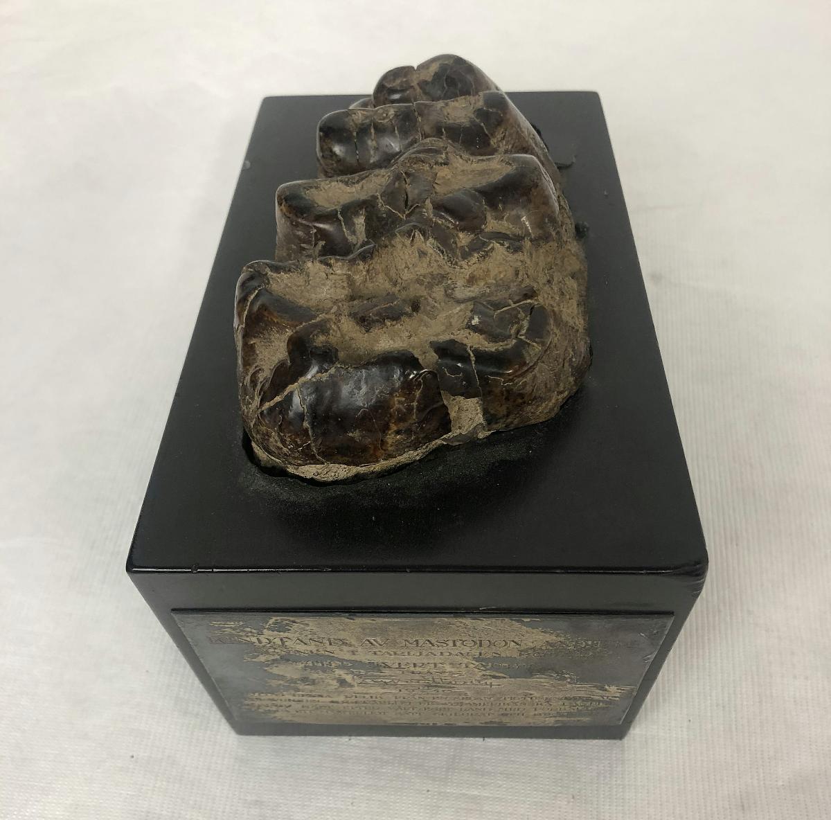 Gravyr: Kindtand av Mastodon Andium. Funnen i Tapijadalen Bolivia. Till Evert Taube från Eric von Rosen 19/3 1940. Denna relik från en sedan tiotusentals år försvunnen djurvärld i de Sydamerikanska länder som vi näst efter vårt eget land med förkärlek....ett mästerligt sätt skildrat och besjungit.