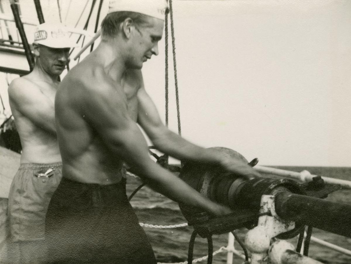 Gå tillbaka till sökLägg till i Min samlingKopiera länkSkriv utAlbatrossexpeditionen, arbete med kolvlodetALBATROSS, 1942, skolskeppAktörerHarry Qvist, Avbildad Axel Jonasson, Avbildad Per-Olof Eriksson (1928 - ), FotografKategoriOceanografi (Forskning) Albatrossexpeditionen (Expeditioner) arbete (verksamhet ombord) befäl och besättning (Personfoto)FartygALBATROSS, 1942, skolskeppFartygstypskolskeppDatering1947-1948InventarienummerSMGF22956UtställdInte utställd på museet