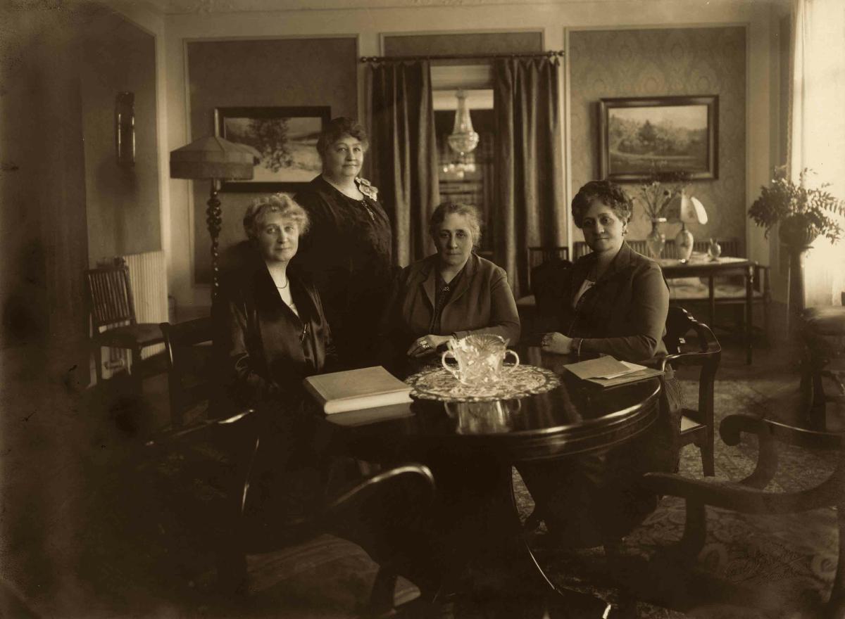 Martina Lundgren, tredje från vänster, sitter vid ett bord. De tre andra kvinnorna på bilden är sannolikt hennes systrar.