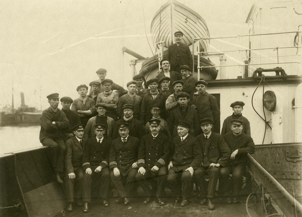 Den manliga besättningen ombord på s/s "THULE". Bilden är troligen tagen under 1920-talet.