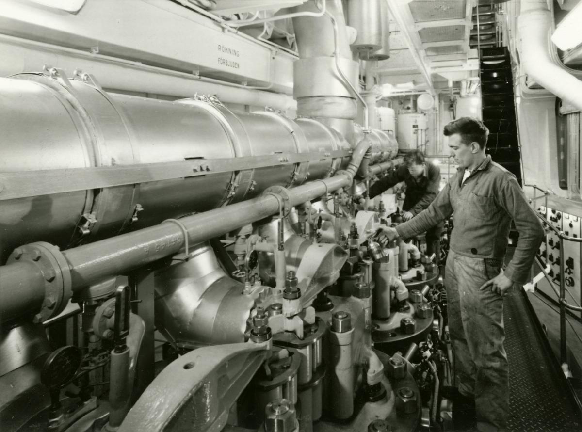 Maskinrummet på okänt fartyg tillhörande Svenska Orientlinjen, mitten av 1900-talet.