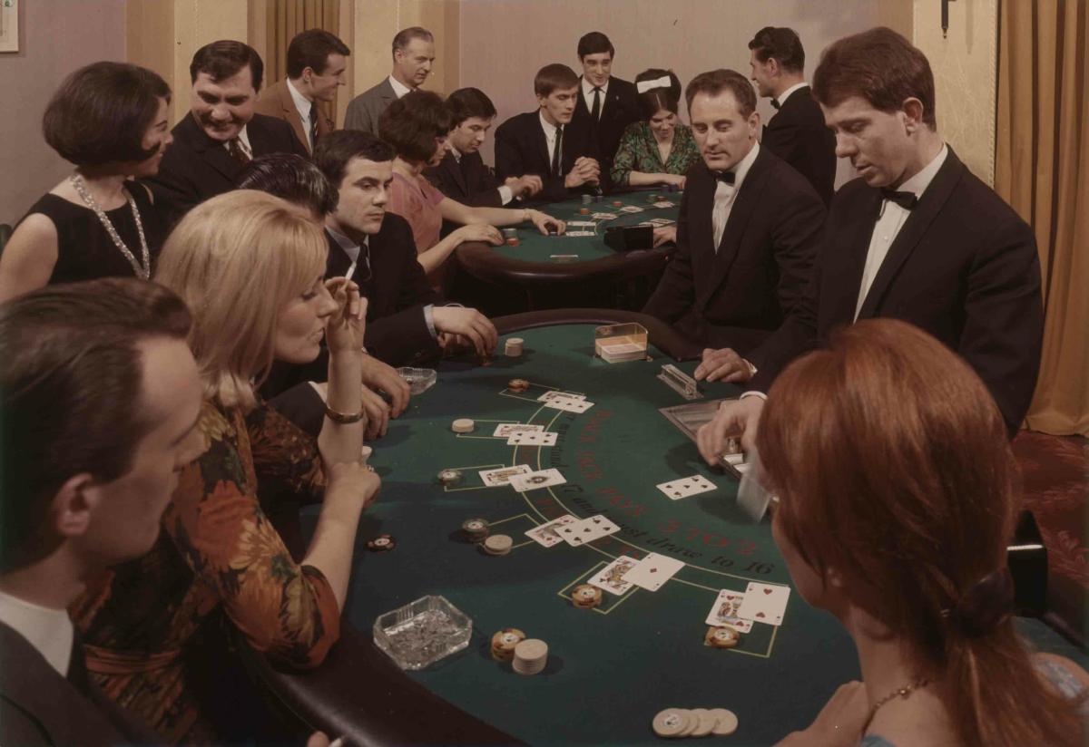 Passagerare och croupier vid Black Jack-bordet på ett av AB Svenska Lloyds passagerarfartyg.