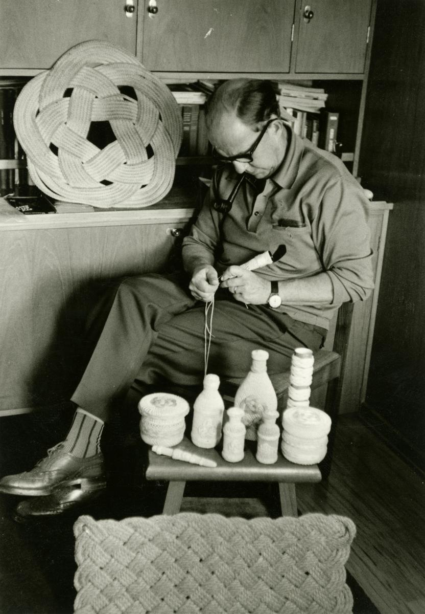 Äldre man jobbar med hantverk. Bilden användes i Svenska Orientlinjens interna tidning Aktuellt nr 2 1970