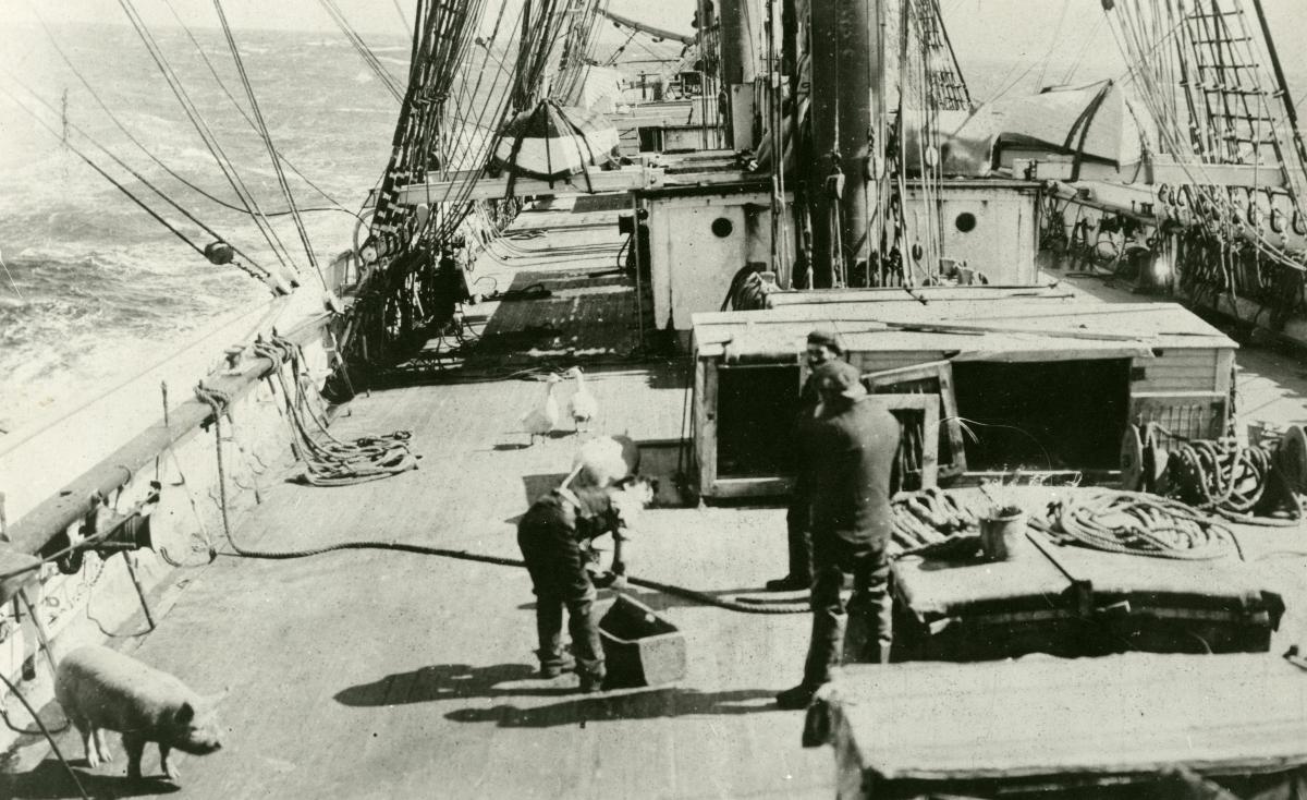 Besättningsmän och diverse djur ombord skolskeppet BEATRICE under perioden 1922-1932. BEATRICE, ex SVITHIOD, ex ROUTENBURN, var en fyrmastad bark byggd i Greenock 1881. Köptes 1922 av A.B. Pollux, Göteborg från Red. A.B. Navigator, (G. Carlsson), Göteborg och döptes då om till BEATRICE. Såld 1932 till Stavanger för upphuggning.