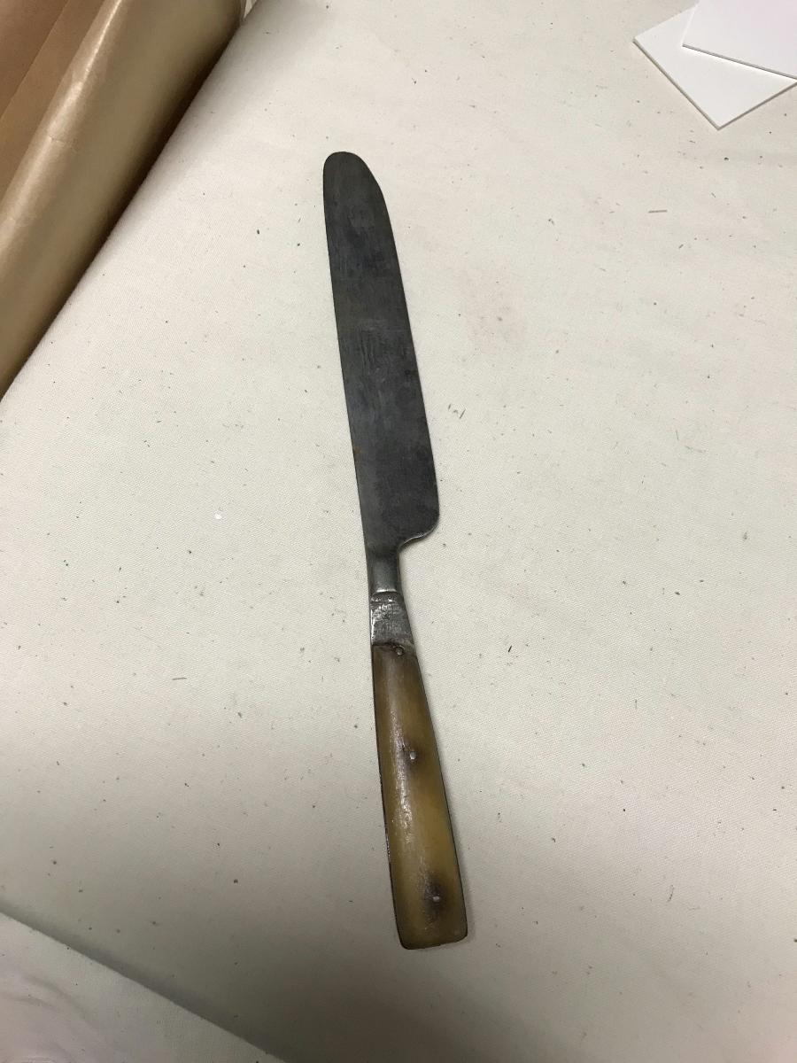 Gå tillbaka till sökLägg till i Min samlingKopiera länkSkriv utKnivGÖTHEBORG II, 1786, ostindiefarareAktörerSvenska Ostindiska Kompaniet (SOIC) (1731 - 1813), BrukareKategoribestick (Inredning, husgeråd)FartygGÖTHEBORG II, 1786, ostindiefarareMaterial och teknikjärn, benInventarienummerSMG18909, 10UtställdInte utställd på museet