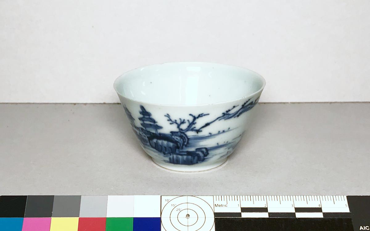 Föremålet kommer från lasten från vraket av ostindiefararen Götheborg, som gjorde tre resor till Kina 1739-45. Vid hemkomsten från den sista resan 12 september 1745 förliste fartyget vid grundet Hunnebådan strax utanför Nya Elfsborgs fästning. Vid flera tillfällen har material tagits upp från vraket. Föremålet kommer från de marinarkeologiska utgrävningarna på platsen 1986-1992.