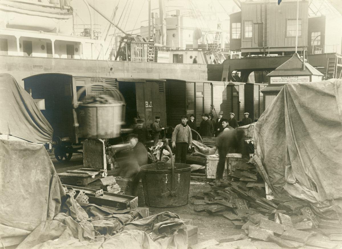 Lastning av tackjärn till SIAM i Göteborgs hamn år 1922