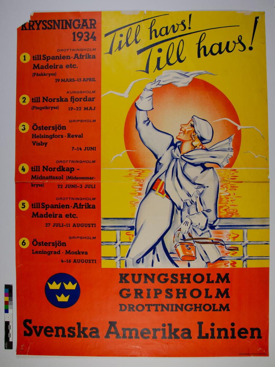 Reklamaffisch för kryssningar år 1934 med Svenska Amerika Linien