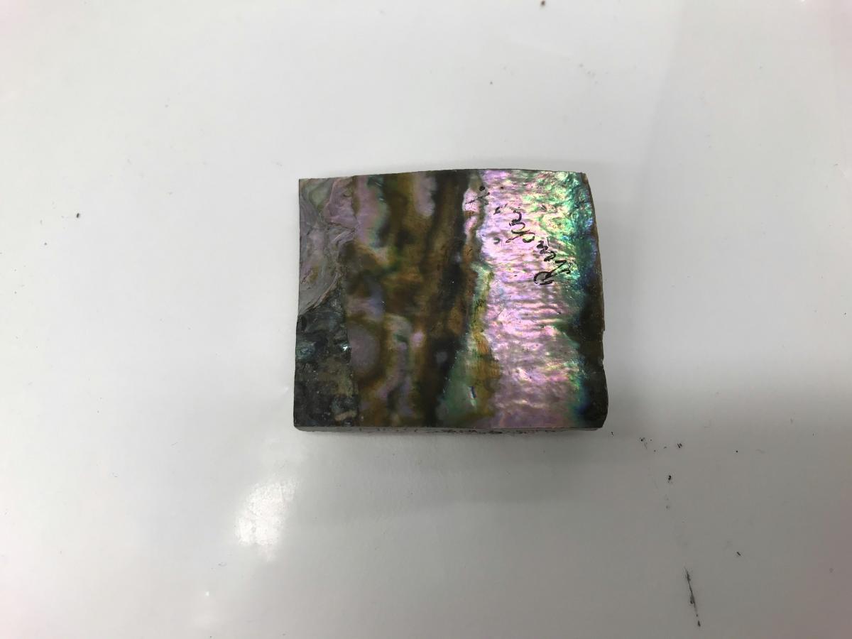 Knopp i pärlemor märkt "Rencke 54". Förvarades i en cigarrask som använts som förvaringslåda för material för sjömansarbete och färdiga produkter.