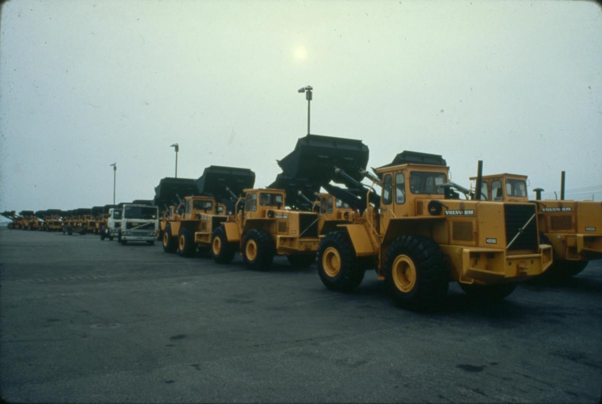 Lastmaskiner på kajen i Frihamnen