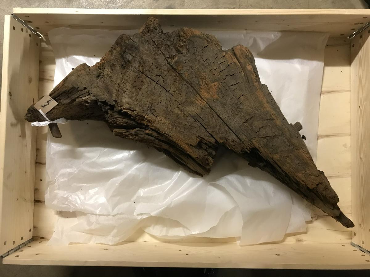 Tre pall med olika föremål, fartygsdetaljer, från utgrävningen finns totalt.