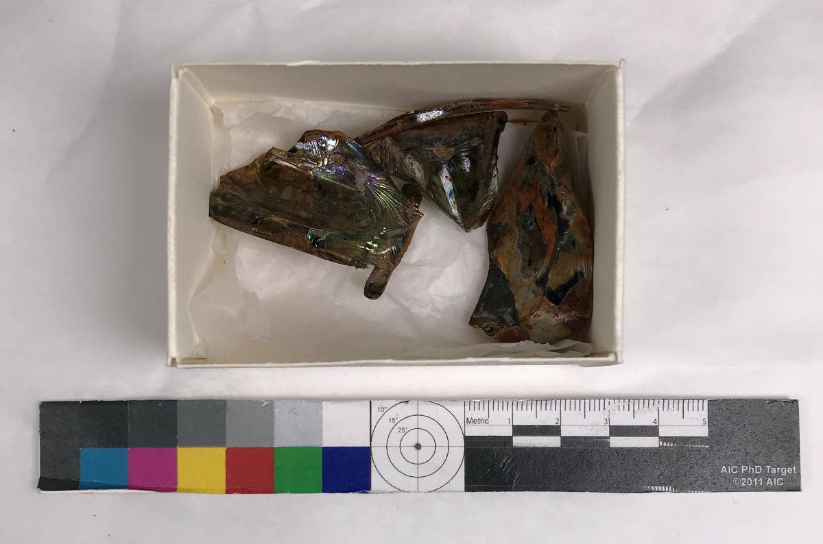Föremålet är från vraket av ostindiefararen Götheborg, som gjorde tre resor till Kina 1739-45. Vid hemkomsten från den sista resan 12 september 1745 förliste fartyget vid grundet Hunnebådan strax utanför Nya Elfsborgs fästning. Vid flera tillfällen har material tagits upp från vraket. Föremålet kommer från de marinarkeologiska utgrävningarna på platsen 1986-1992.
