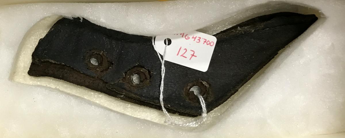 Föremålet är från vraket av ostindiefararen Götheborg, som gjorde tre resor till Kina 1739-45. Vid hemkomsten från den sista resan 12 september 1745 förliste fartyget vid grundet Hunnebådan strax utanför Nya Elfsborgs fästning. Vid flera tillfällen har material tagits upp från vraket. Föremålet kommer från de marinarkeologiska utgrävningarna på platsen 1986-1992.