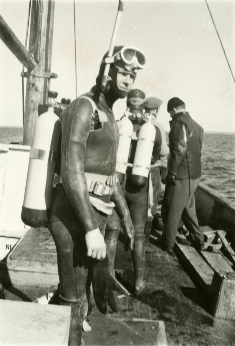 Dykare under arbete med undersökningar av vraket från STORA SOPHIA i april 1961.