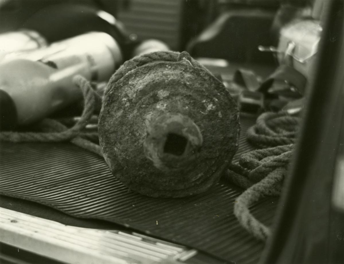 Bärgad kanon från av vraket från STORA SOPHIA i april 1961.