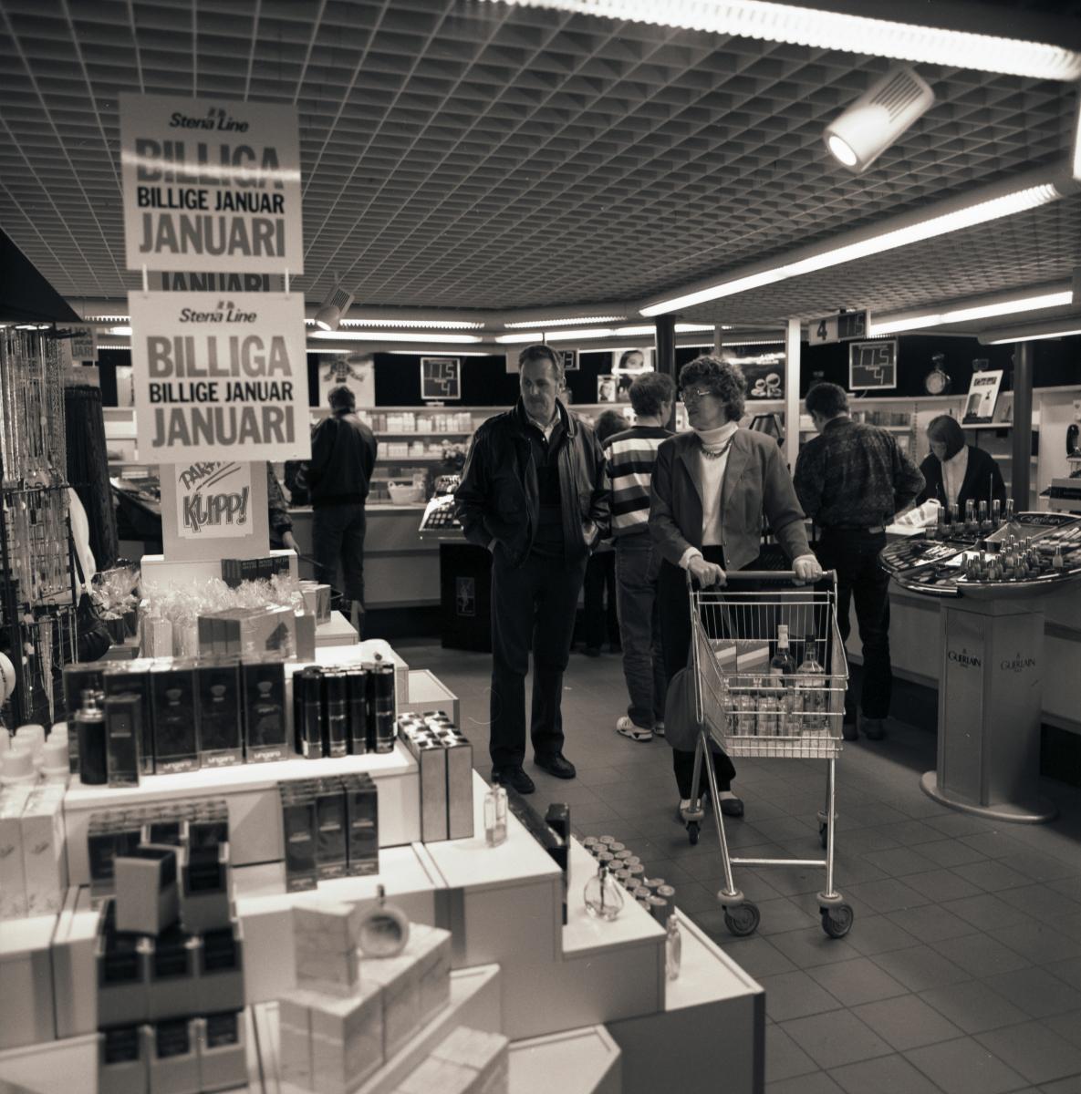 Passagerare i butiken ombord ett av Stena Lines Danmarksfartyg.