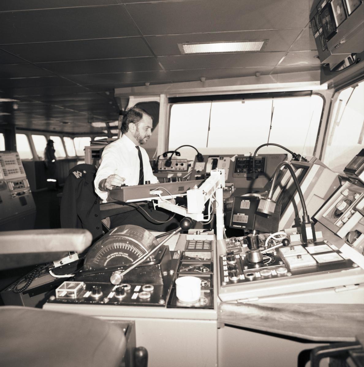 Styrman i arbete på bryggan ombord ett av Stena Lines Danmarksfartyg.