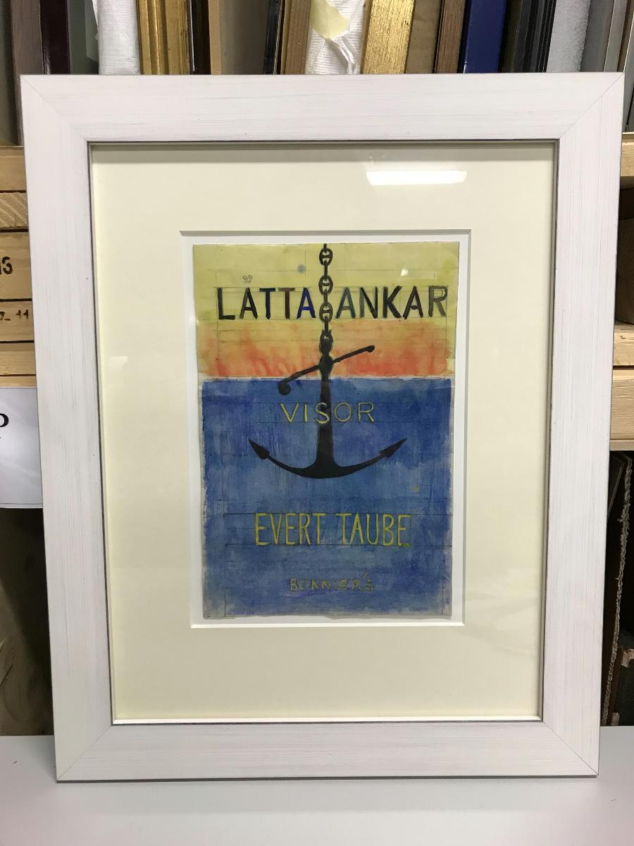 Inramad bokomslagsskiss till visboken Lätta ankar