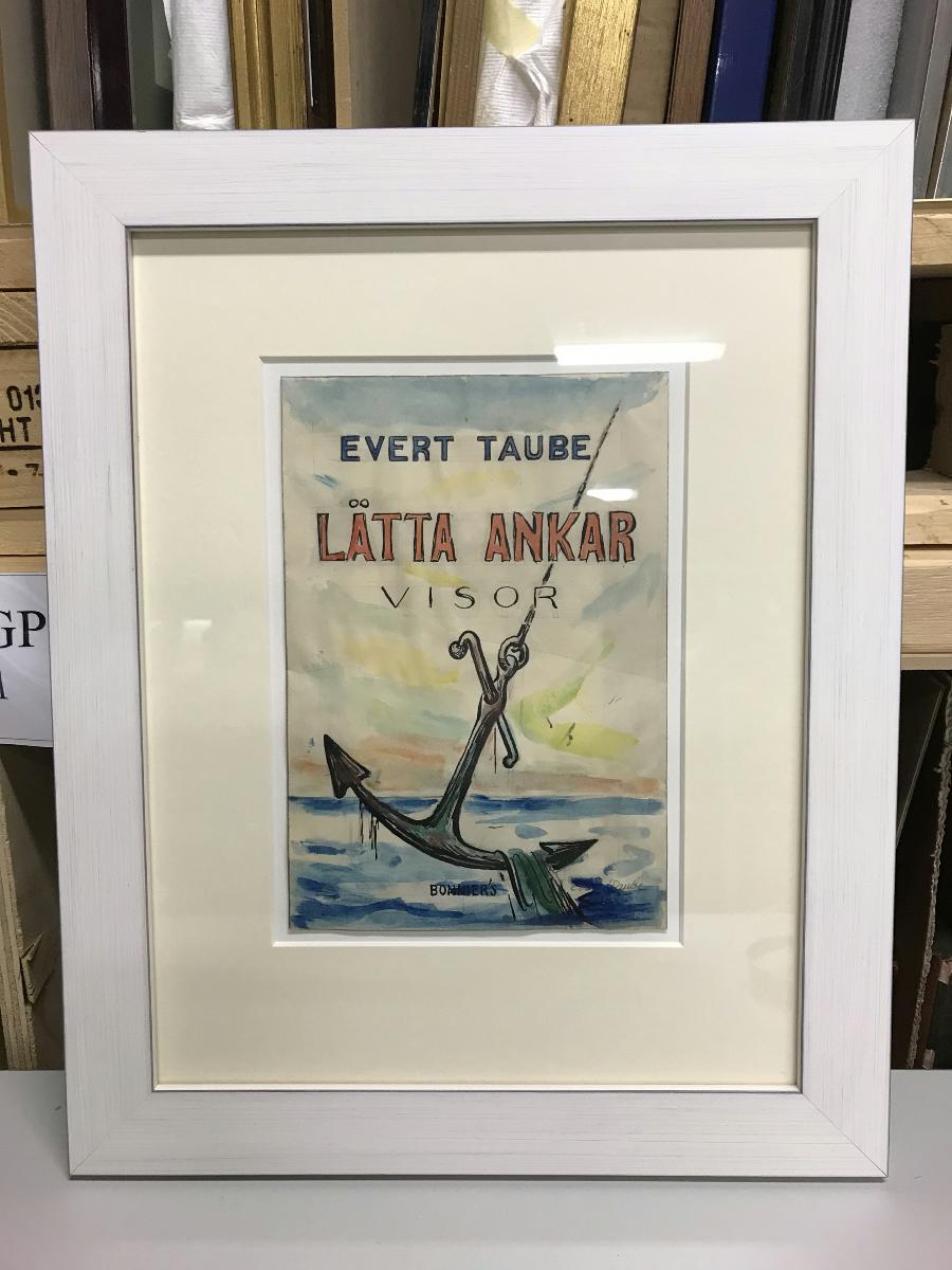 Inramad bokomslagsskiss till visboken Lätta ankar