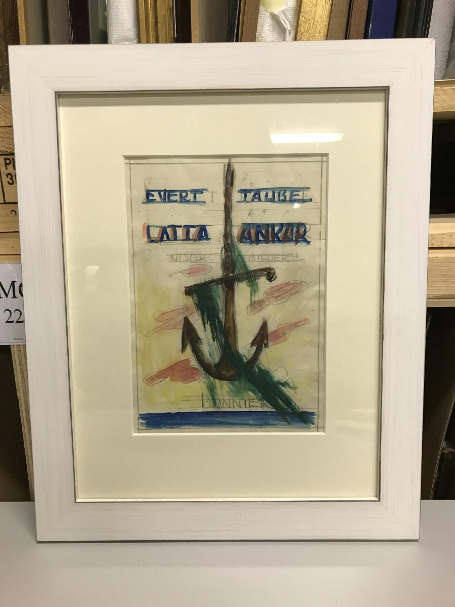 Inramad bokomslagsskiss till visboken Lätta ankar