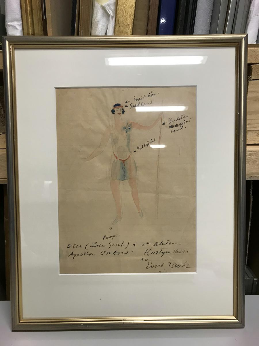 Påskrift: Elsa (Lola Gral) i 2a akten "Apollo ombord". Kostymskiss av Evert Taube.
