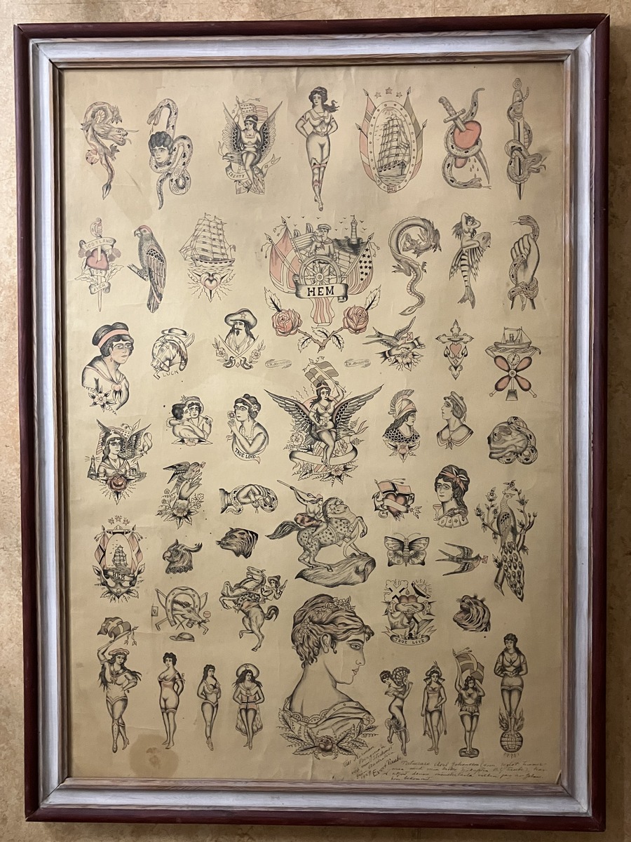 Inramad plansch mönstertavla med tatueringsförlagor.