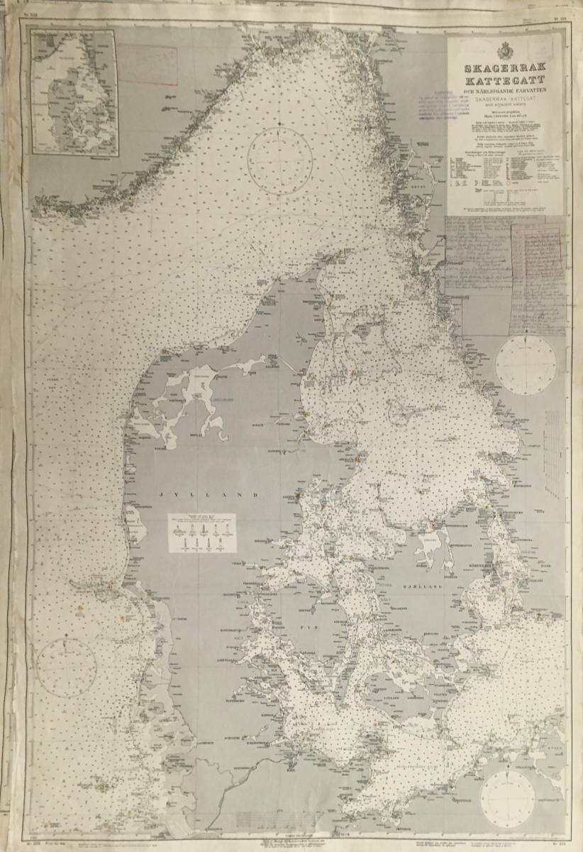 Sjökort Skagerrak - Kattegatt. 1940. Med anteckningar på blyerts.