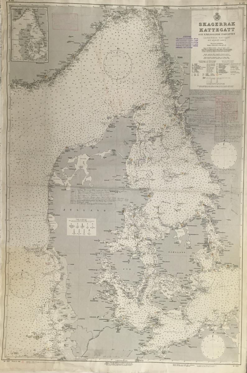 Sjökort Skagerrak - Kattegatt. 1940. Med anteckningar på blyerts.