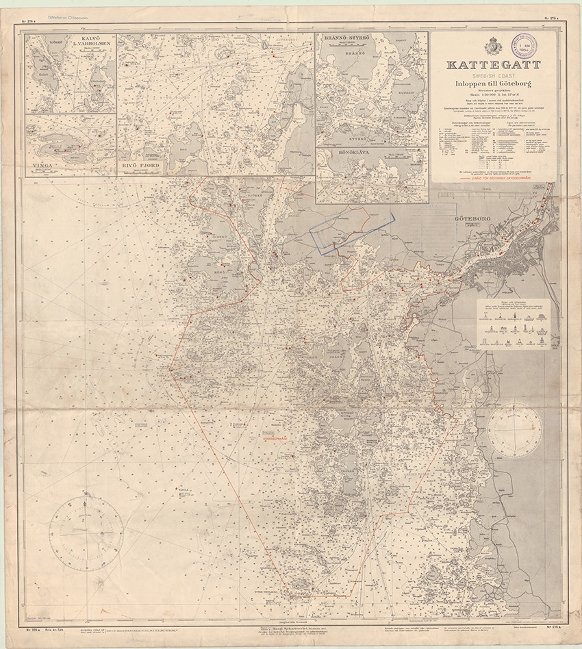 Sjökort Kattegatt, Inloppen till Göteborg, rättade till 1 juni 1954