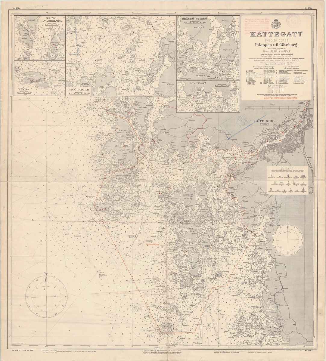 Sjökort Kattegatt, Inloppen till Göteborg, rättade till 1 april 1954