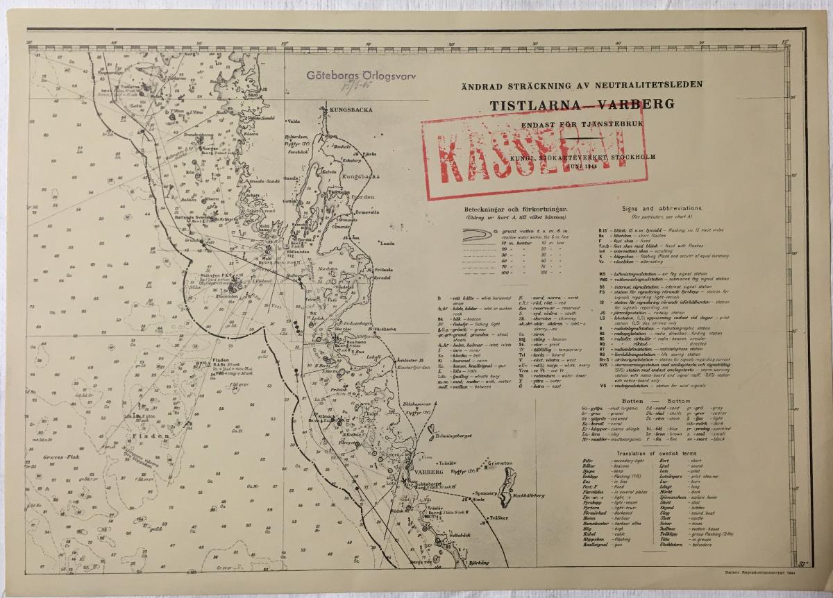 Sjökort, Ändrad Sträckning av Neutralitetsleden, Tistlarna - Varberg. 1944