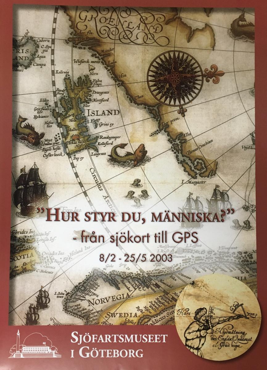 Utställnings affisch till 'Hur Styr Du, Människa? - Från Sjökort till GPS' Sjöfartsmuseet i Göteborg, 8/2 - 25/5 2003