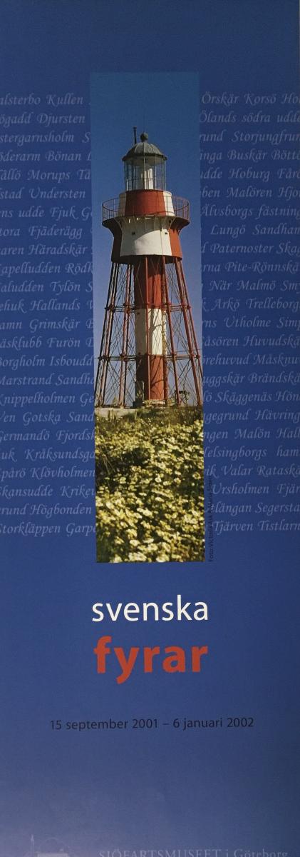 Utställnings affisch till 'Svenska Fyrar' Sjöfartsmuseet i Göteborg, 15 september 2001 - 6 januari 2002