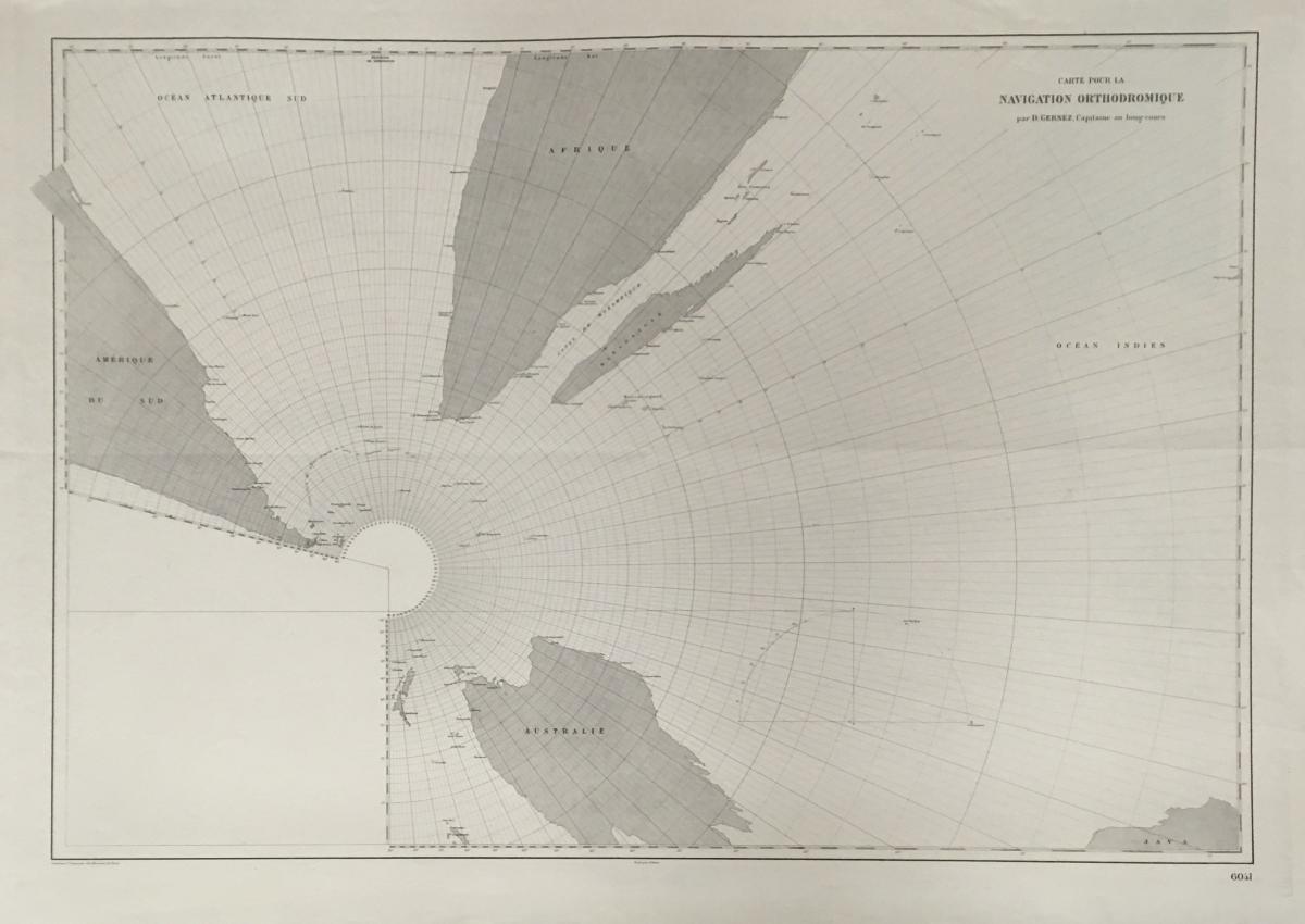 Sjökort, Franskt sjökort, Karta för Great Circle Navigation 'Carte pour la navigation orthodromique', 1800 - 1900