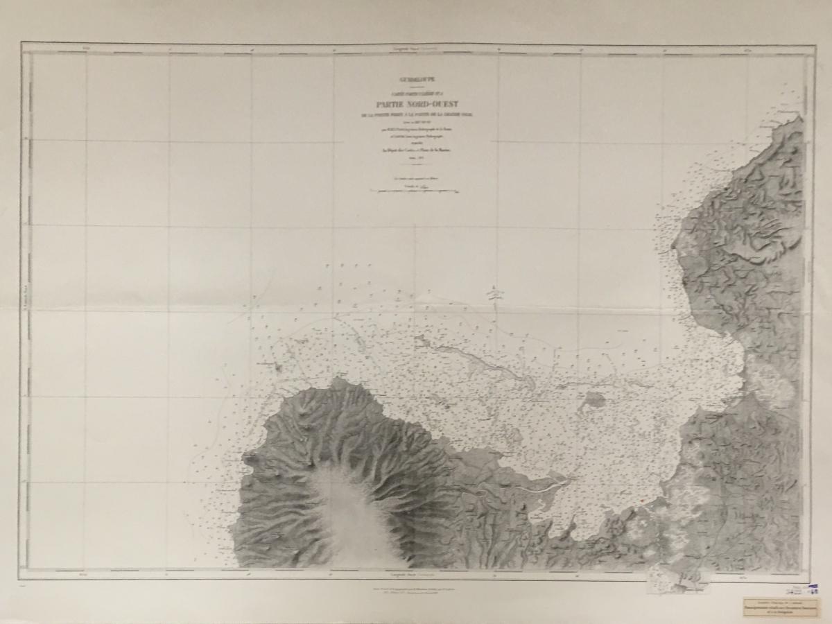 Sjökort Guadeloupe, Partie nord-ouest. Guadeloupe, Nordväst 1875 På franska.