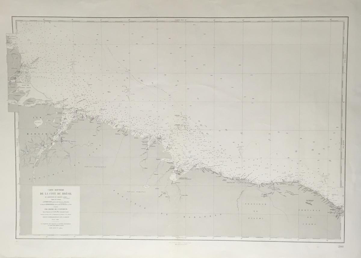 Gå tillbaka till sökLägg till i Min samlingKopiera länkSkriv utSjökort BrasilAktörerKungliga Sjökarteverket, Förvärvat frånKategoriSjökort (Karta)Datering1864GeografiAtlanten (Hav och sjöar) Brasília (Sydamerika, Brasilien) Brasilien (Sydamerika)Material och teknikpapper, bläck, tryckDimensioner100,00 x 75,00 cmInventarienummerSMG46141UtställdInte utställd på museetBeskrivningSjökort Brasil, Maranhão 1867. På franska 'De la cote du bresil'