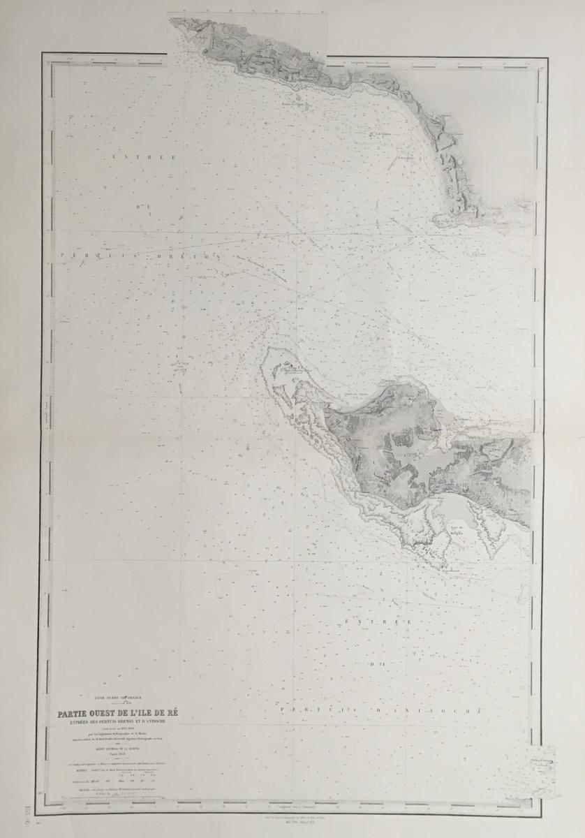 Sjökort, L'île de Ré, Frankrike 1831. På franska 'Partie Ouest de L'ile de Re'