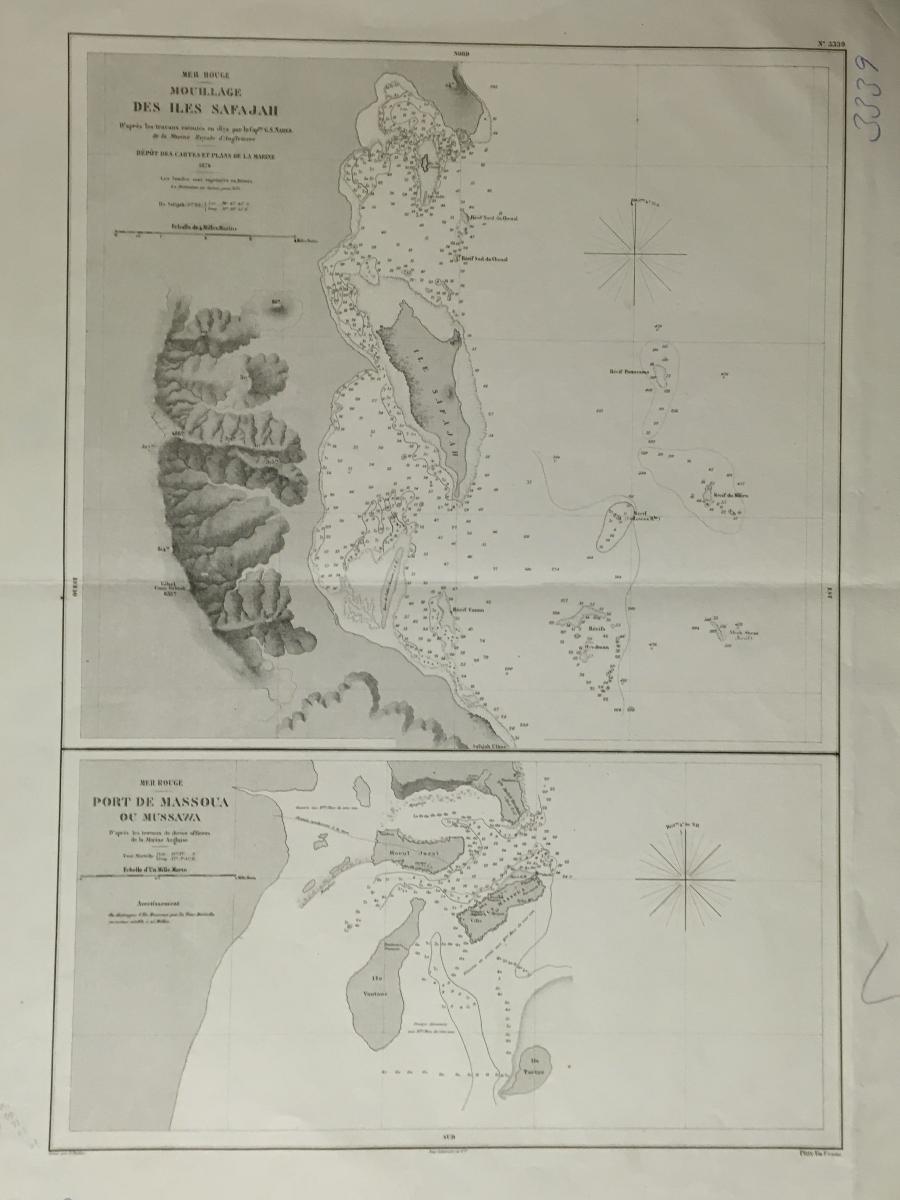 Sjökort, Mouillage des Iles Safajah, Port de Massoua ou Mussawa