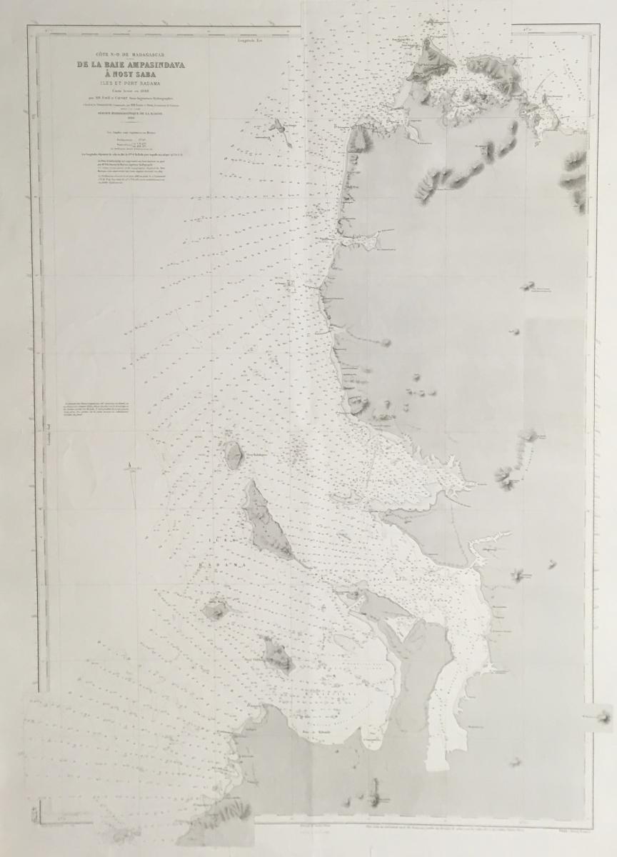 Sjökort, Madagaskar 1890. På franska 'De la Baie Ampasindava a Nosy Saba'