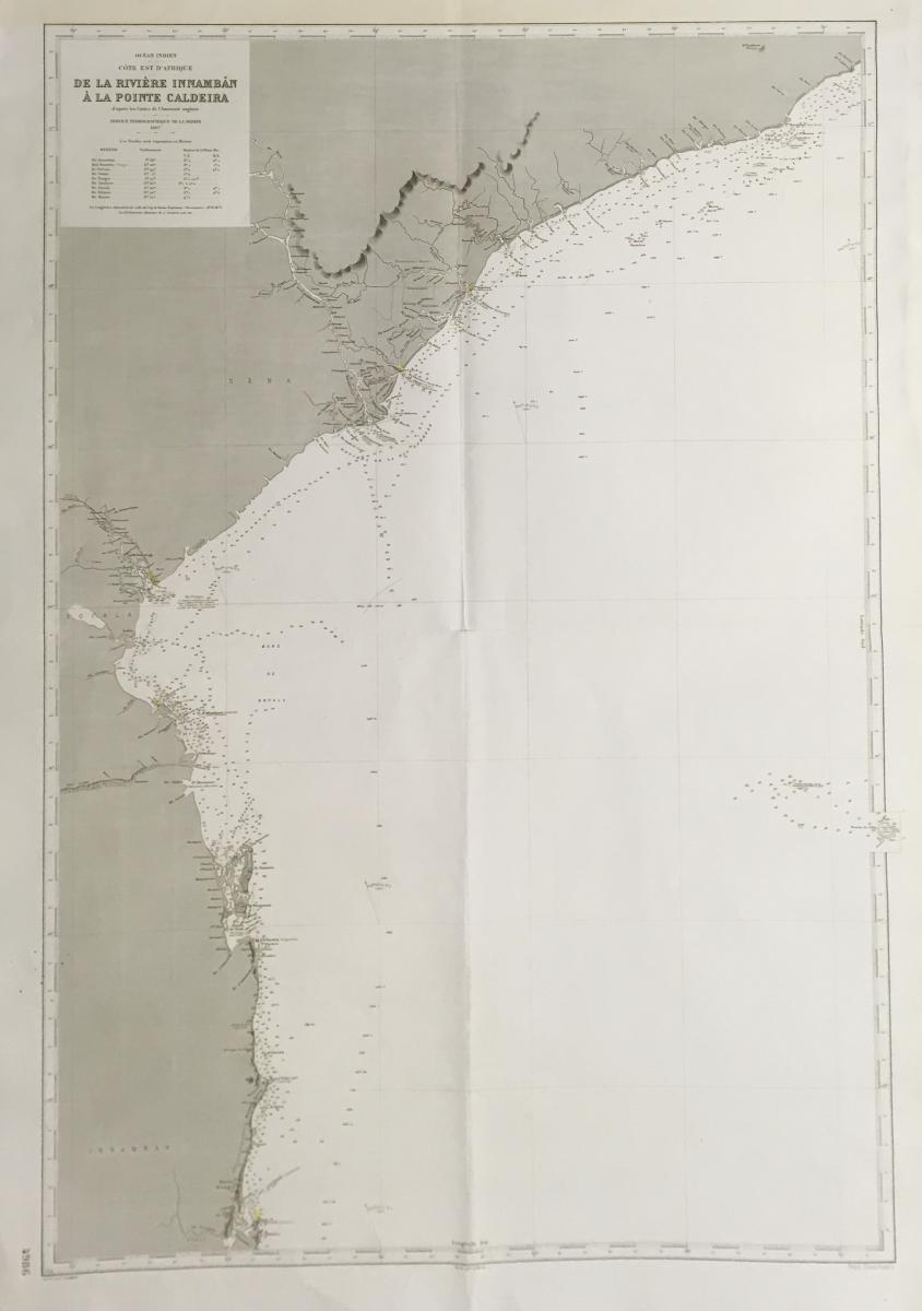 Sjökort, Moçambique, 1897. På franska 'De la Riviere Innamban a la Pointe Caldeira'