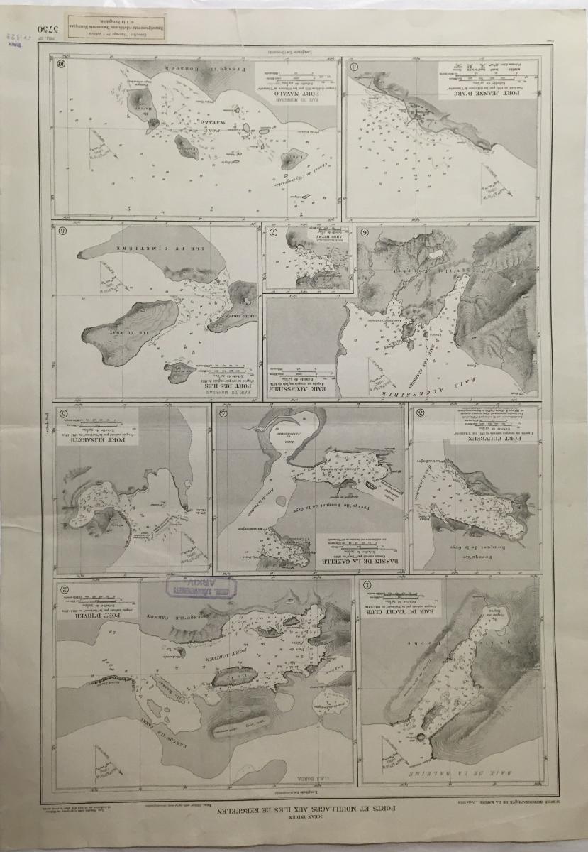 Sjökort, Kerguelenöarna 1938. På franska 'Ports et Mouillages aux Iles de Kerguelen'