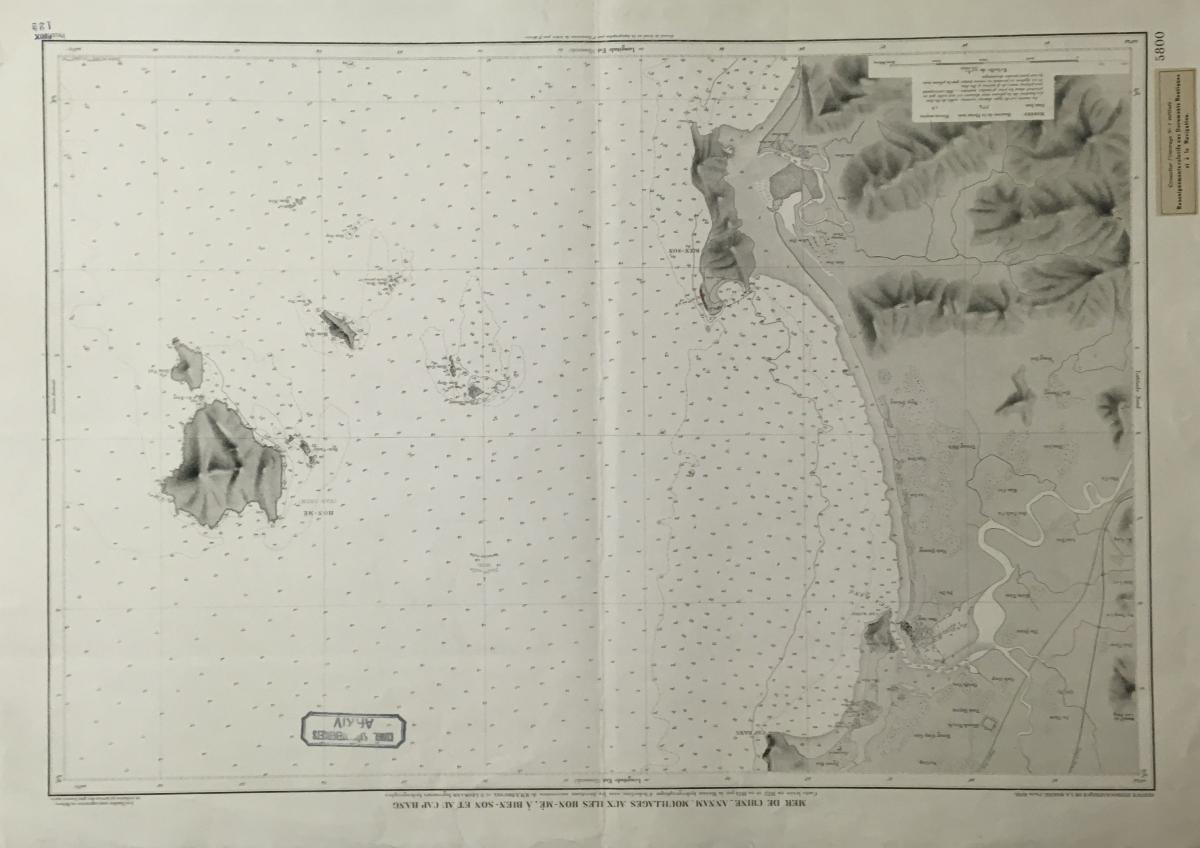 Sjökort, 1938. På franska 'Mer de Chine - Annam - Mouillages Aux Iles Hon-Me, A Bien-Son et au Cap Hang'