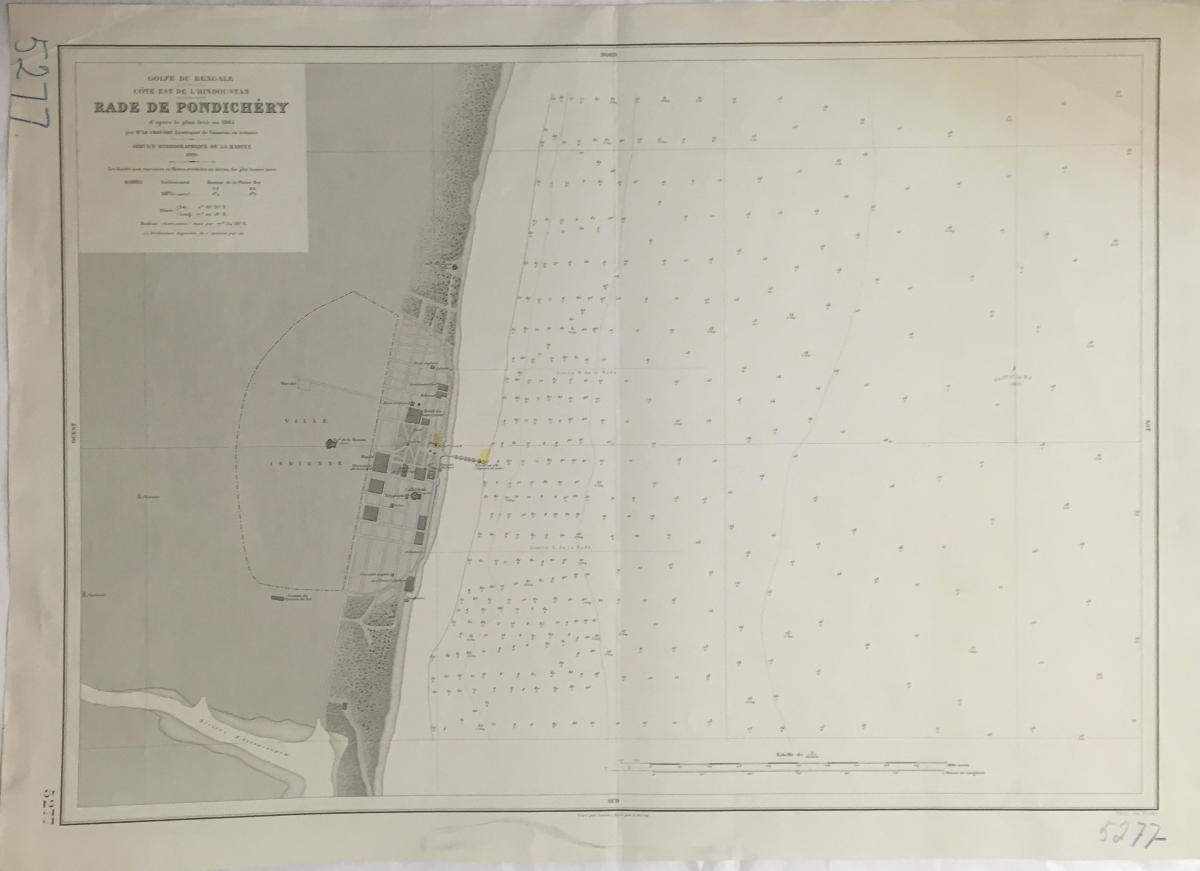 Gå tillbaka till sökLägg till i Min samlingKopiera länkSkriv utSjökort, Rade de Pondichery, Golfe du BengaleAktörerKungliga Sjökarteverket, Förvärvat frånKategoriSjökort (Karta)Datering1905GeografiIndien (Asien) AsienMaterial och teknikpapper, bläck, tryckInventarienummerSMG46461UtställdInte utställd på museetBeskrivningSjökort, Indien 1905. På På franska 'Rade de Pondichery, Golfe du Bengale'