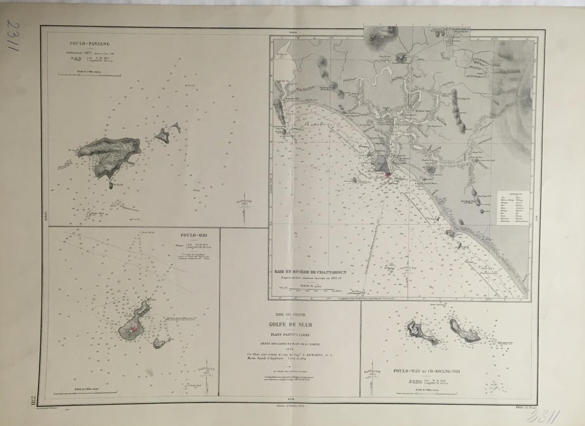 Gå tillbaka till sökLägg till i Min samlingKopiera länkSkriv utSjökort, Mer de Chine, Golfe de SiamAktörerKungliga Sjökarteverket, Förvärvat frånKategoriSjökort (Karta)Datering1866GeografiAsien Thailand (Asien)Material och teknikpapper, bläck, tryckInventarienummerSMG46468UtställdInte utställd på museetBeskrivningSjökort, Thailandviken Bukt 1866. På franska 'Mer de Chine, Golfe de Siam'