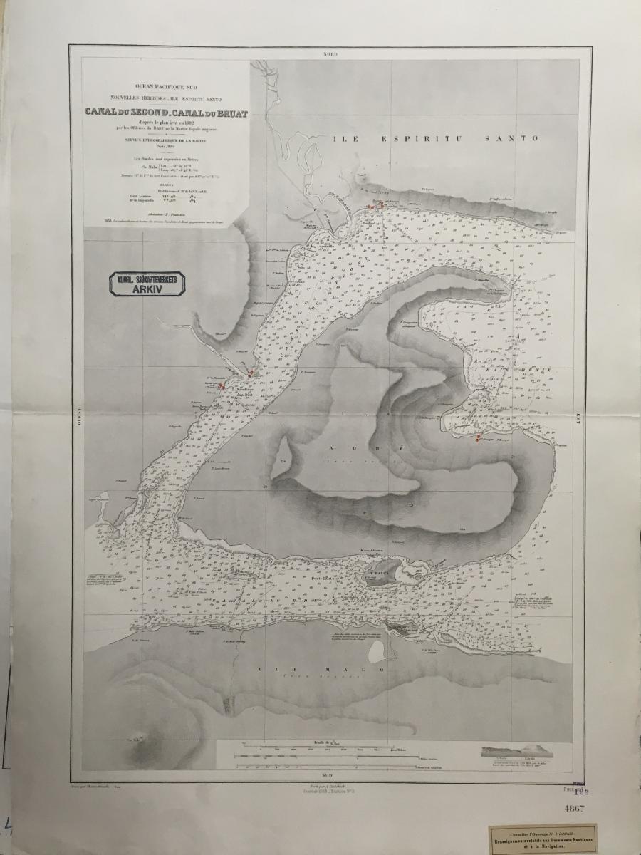 Sjökort, Nya Hebriderna är en ögrupp som var ett brittisk-franskt kondominatområde i Stilla havet 1937. På franska 'Canal du Segond du Canal du Bruat'
