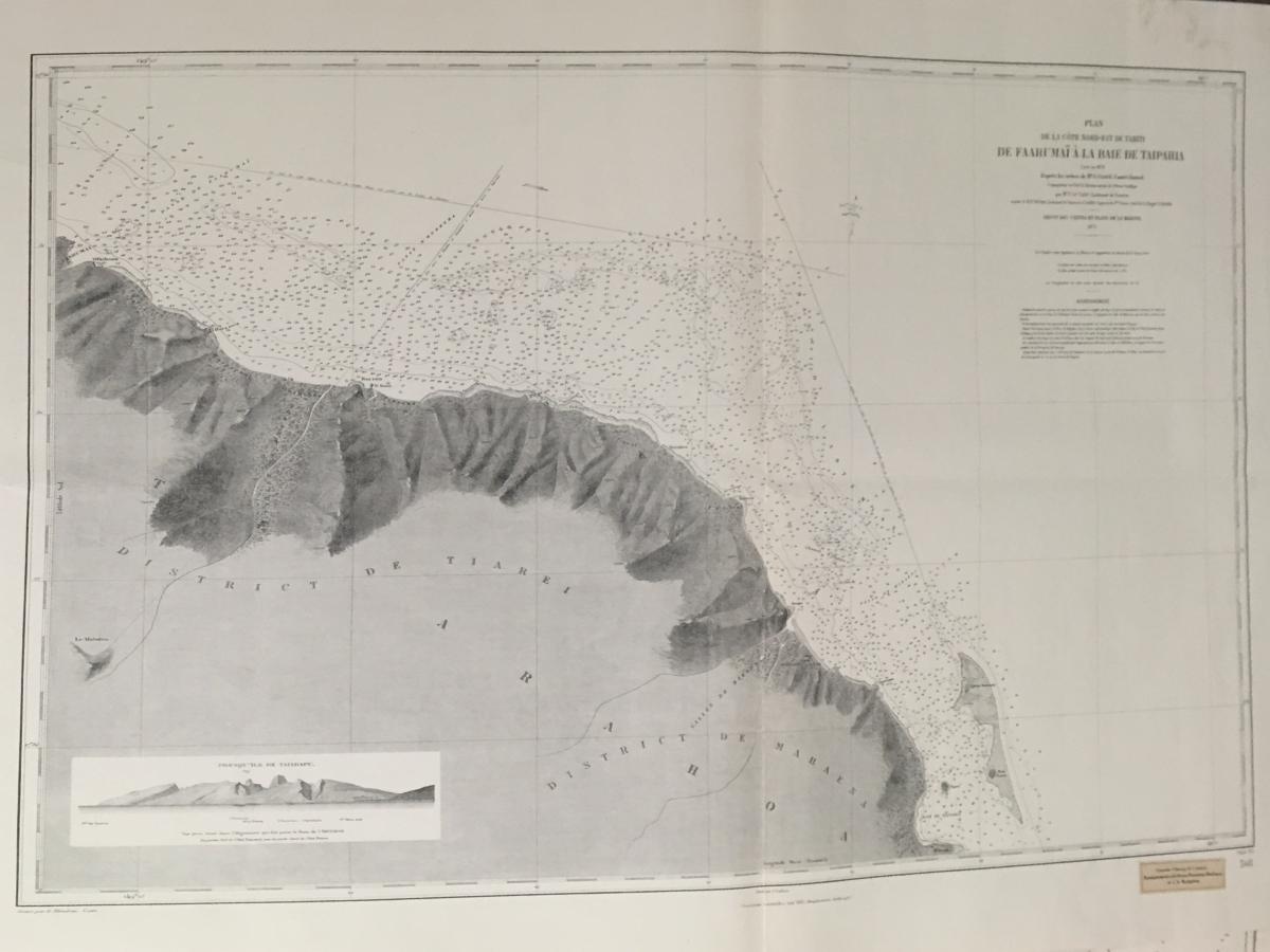 Sjökort, Tahiti 1875. På franska 'De Faarumai a la Baie de Taipahia, Tahiti'