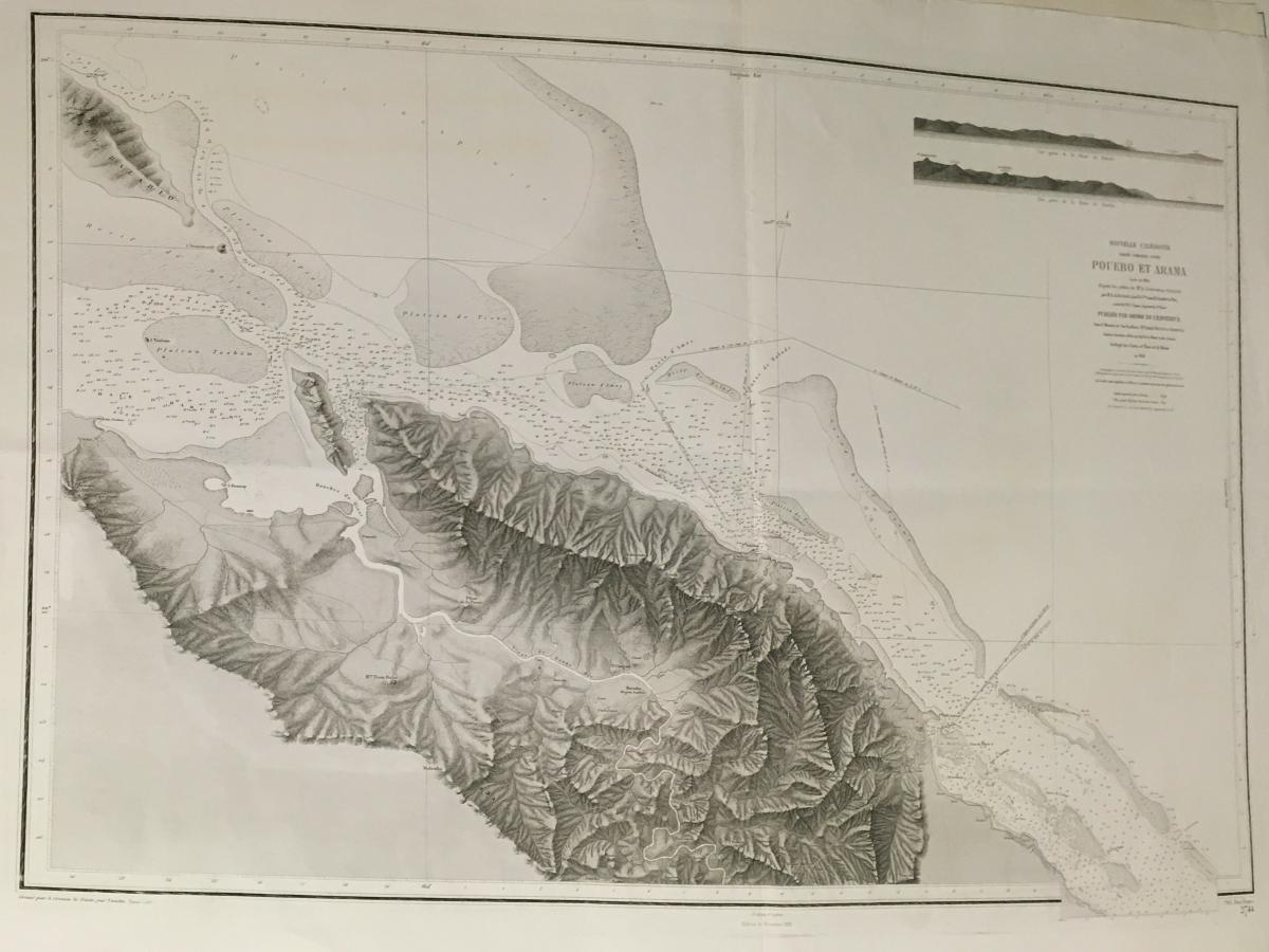 Sjökort, Nya Kaledonien 1868. På franska 'Nouvelle Caledonie, Pouebo et Arama'